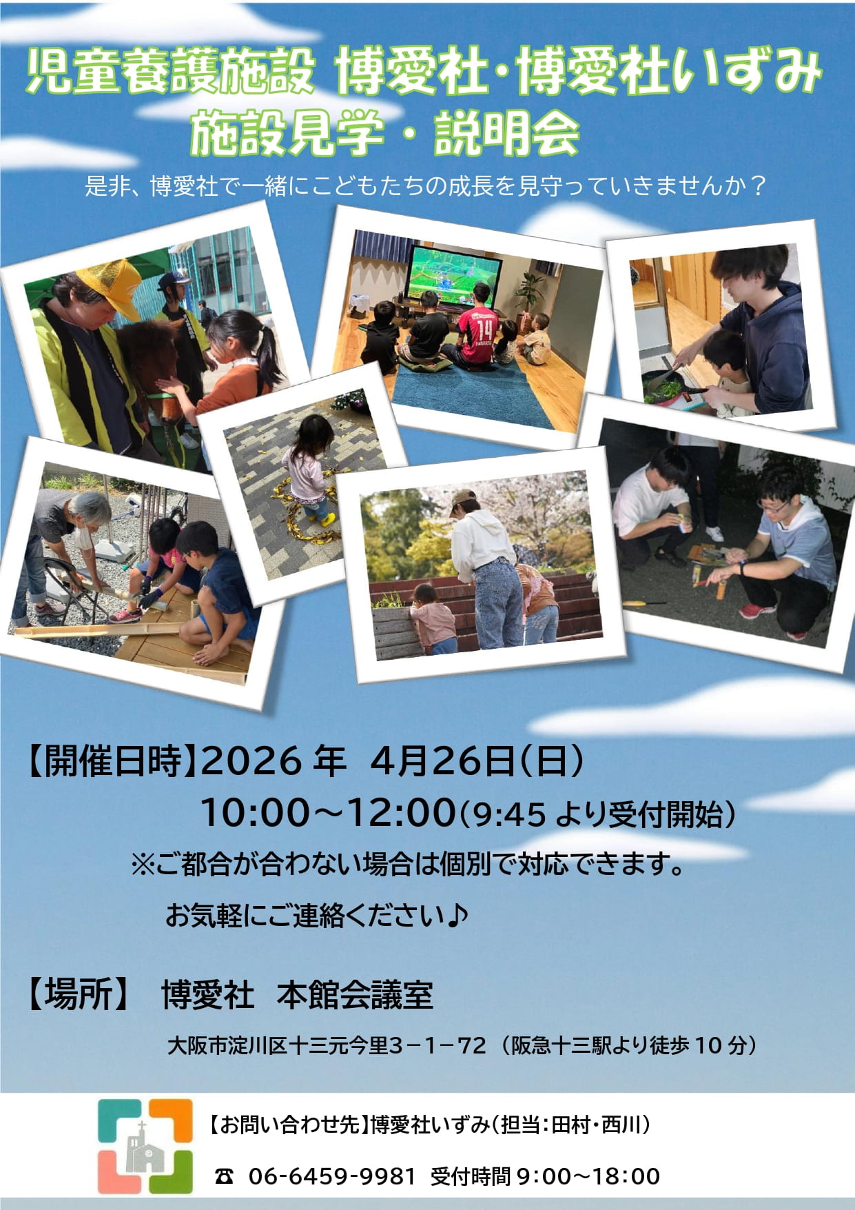大阪府 博愛社・博愛社いずみ 児童養護施設 オフライン(対面) 【2026年4月26日】施設見学・説明会 開催決定!! 開催日時 2026/04/26(日) 10:00~12:00 開場時間 2026/04/26 09:45 申込締切 2026/04/25 12:00 詳細を見る