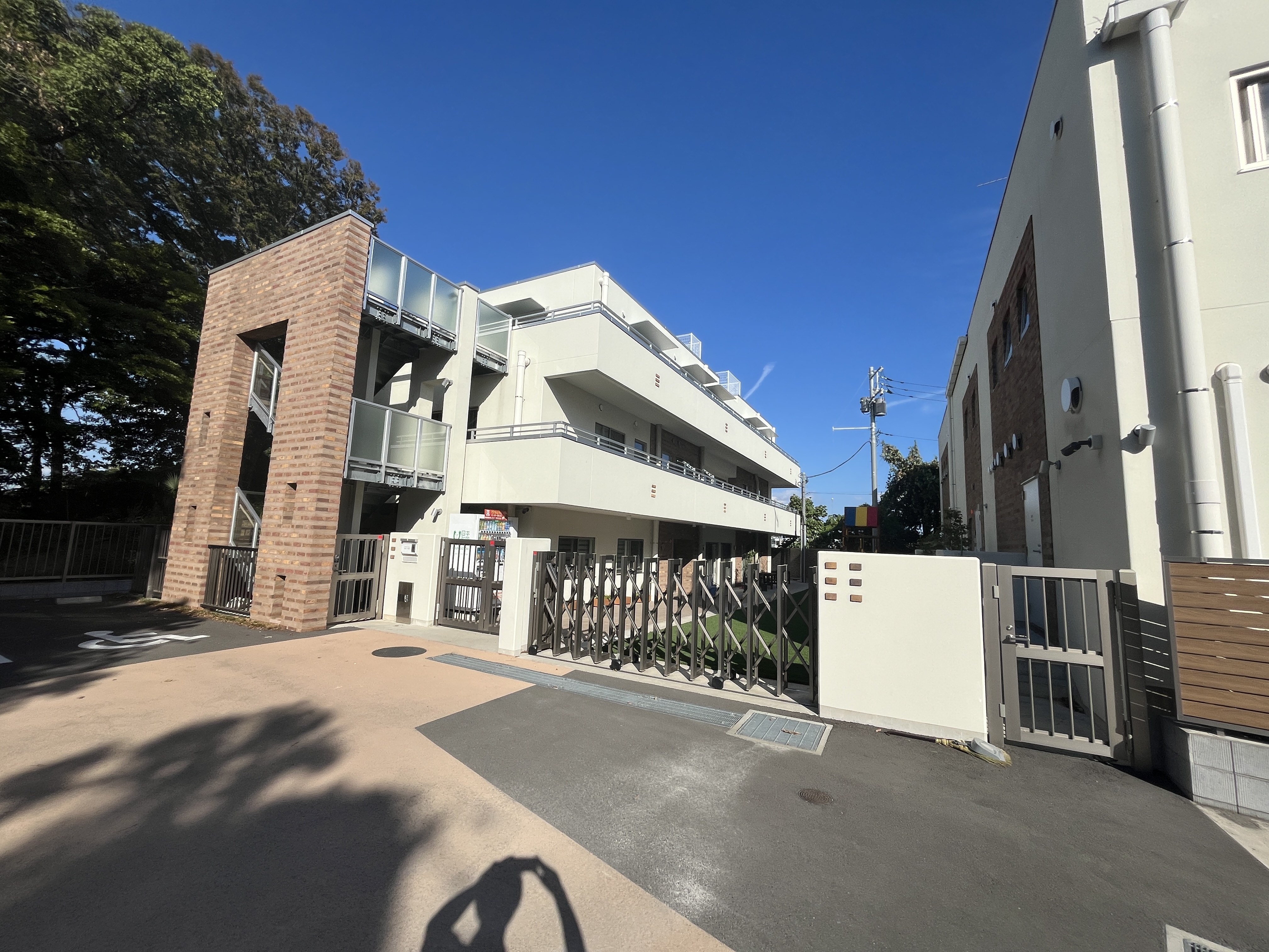 建物の間には、主に高風子供園が使用する園庭もありました!人工芝が敷かれ、遊具もあって、大人も思わずワクワクする空間でした!