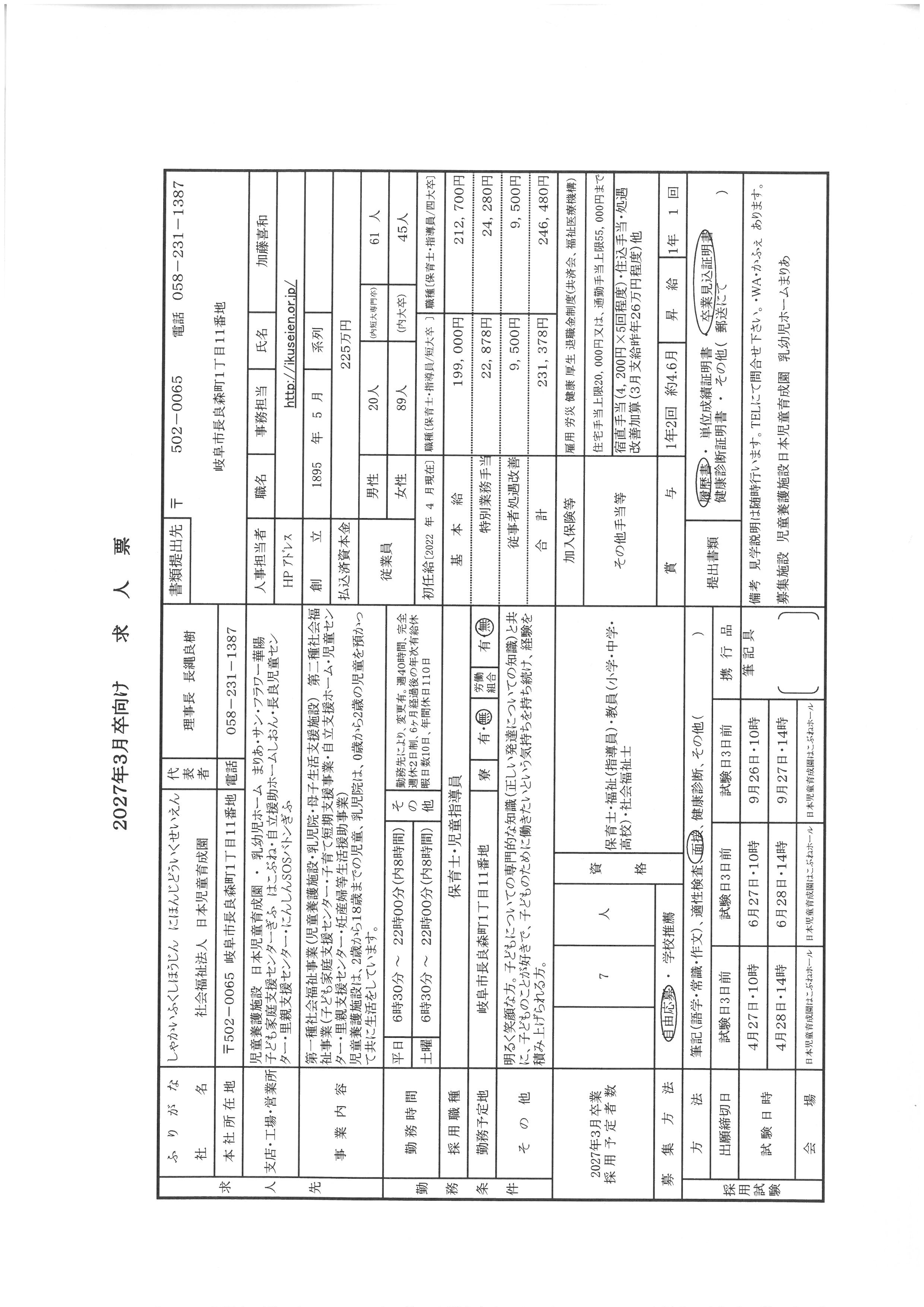 【新卒】保育士(正職員)募集!