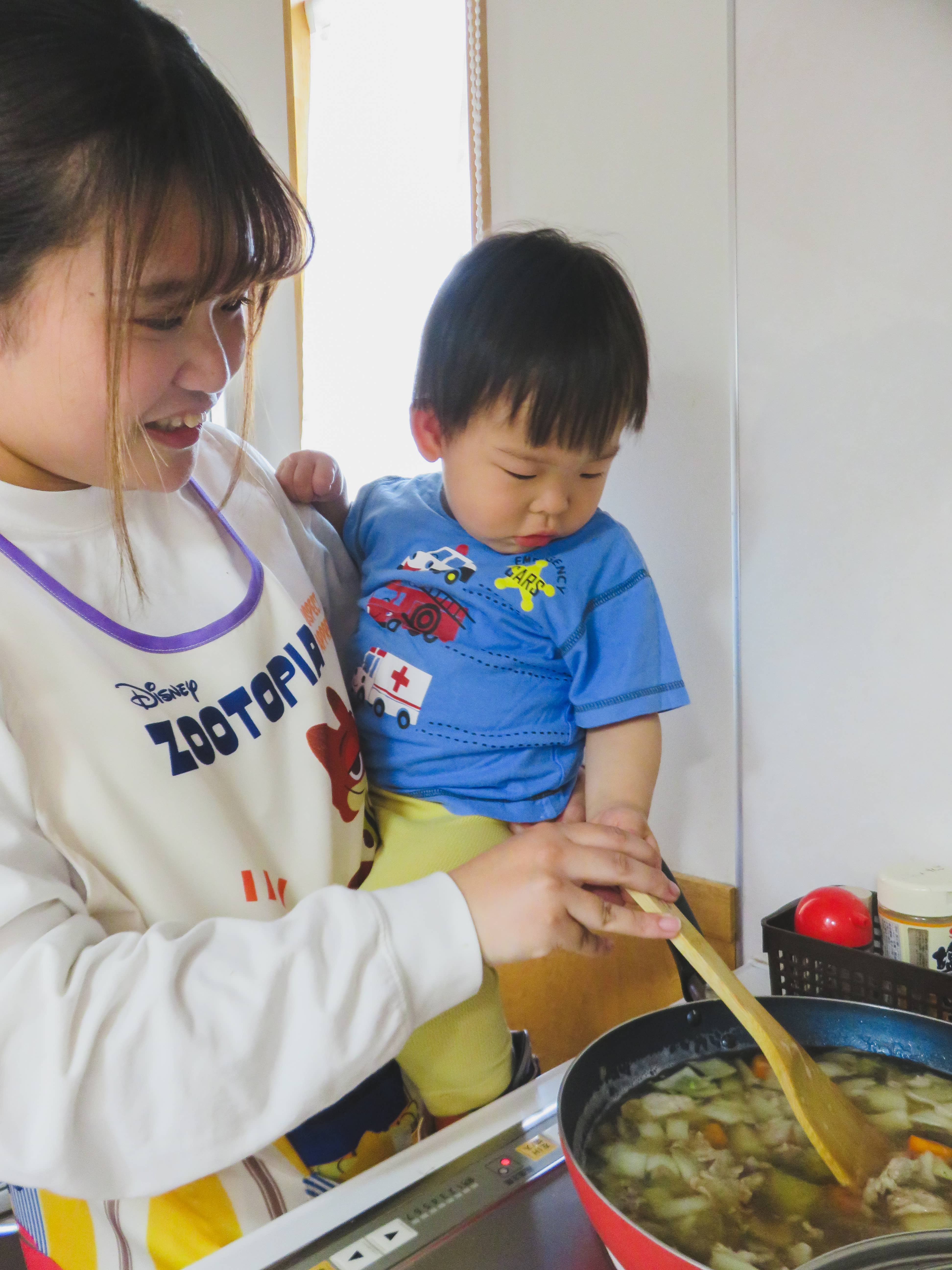 道を挟んだ場所に同法人の児童養護施設があり、乳児院から児童養護施設へ移行(措置変更)する際も、子どもたちが安心できるように何度も交流を重ねています。入所後も乳児院に遊びに来て宿題をしたり、一緒に食事をしたりと、継続した関わりを大切にしています。