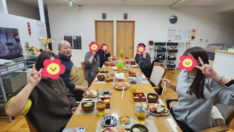 住み込み職員が在籍し、24時間体制で生活を見守っています。また、「温かい食事を囲みながら他愛もない会話をする」ことを大切にしており、平日や祝日の食事はスタッフが用意し、同じ食卓を囲んで食事をとります。何気ない会話の中から気づきや支援につながることも多く、入居者の変化を間近で感じながら関われる環境です。