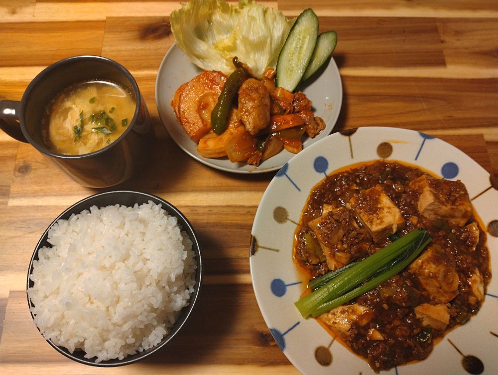 [夕食(麻婆豆腐、オイスターソース炒め)]