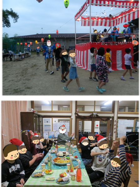 BBQで美味しいお肉をパクリ(*^^*)安波山登山は、頂上からの景色が格別です‼[(上)夏祭り・(下)クリスマス会]