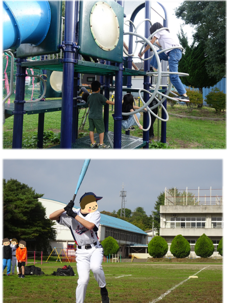 夏祭りやクリスマス会など、季節ごとの行事も満載です♪[(上)公園で遊具遊び・(下)野球]