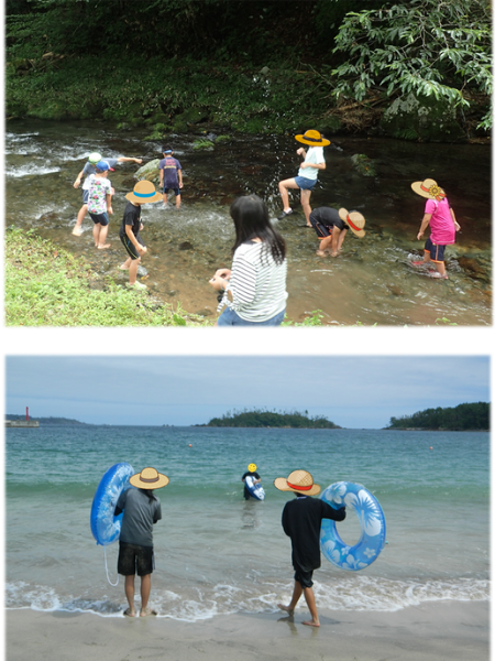 [(上)川遊び・(下)海水浴]