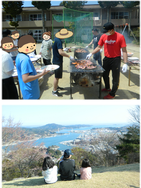気仙沼市大島に別荘を所有しており、夏には海水浴に別荘から徒歩5分‼夜には、BBQや花火を楽しむ素敵な環境が整っています‼近くの川での川遊びもあり、夏を満喫しています![(上)BBQ・(下)安波山登山]