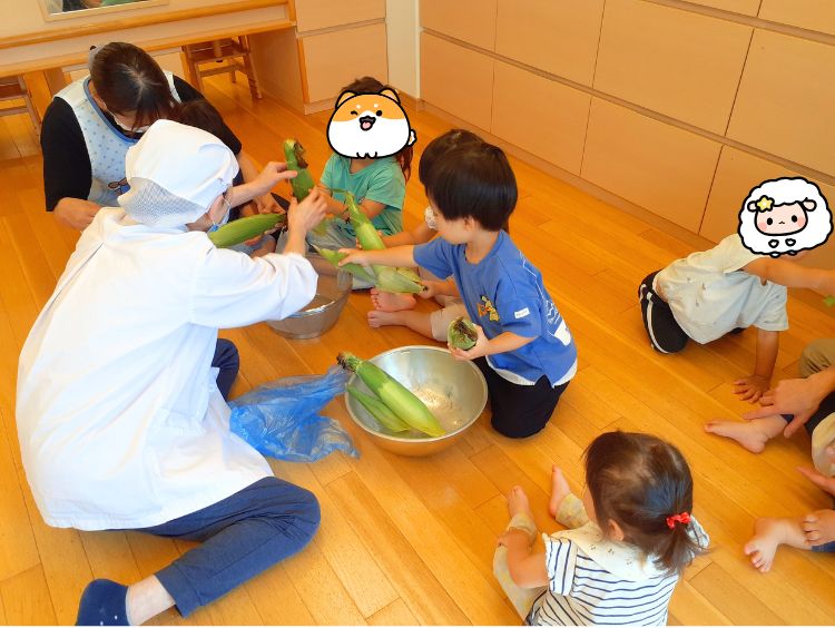 [食育(とうもろこしの皮むき]