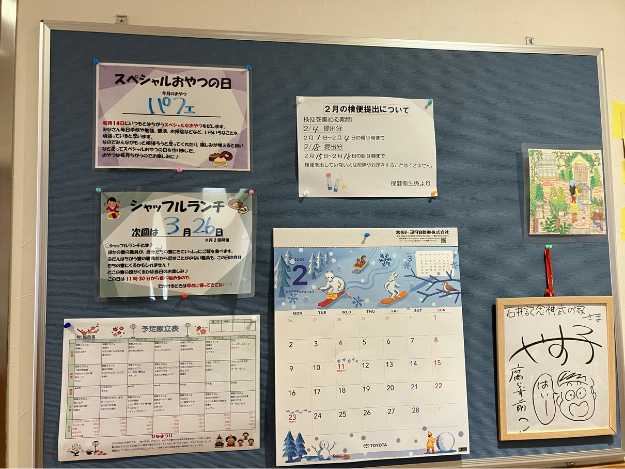 ・月1回のシャッフルランチ:ユニット以外の職員などが混ざってご飯を食べるイベントです。