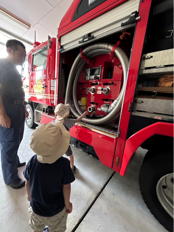 カッコいい消防車@神武の家駐車場[夏休み遠足(日南海岸)]