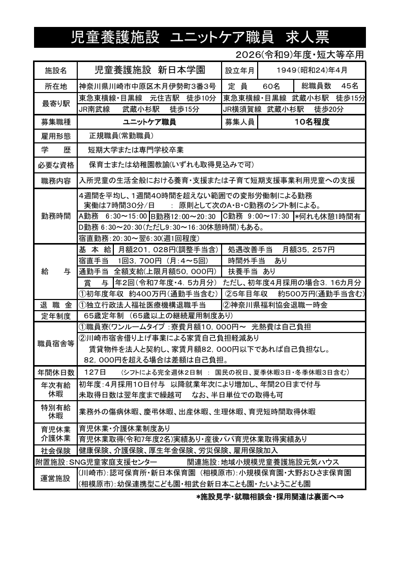 【新日本学園で働いている職員・仕事環境】